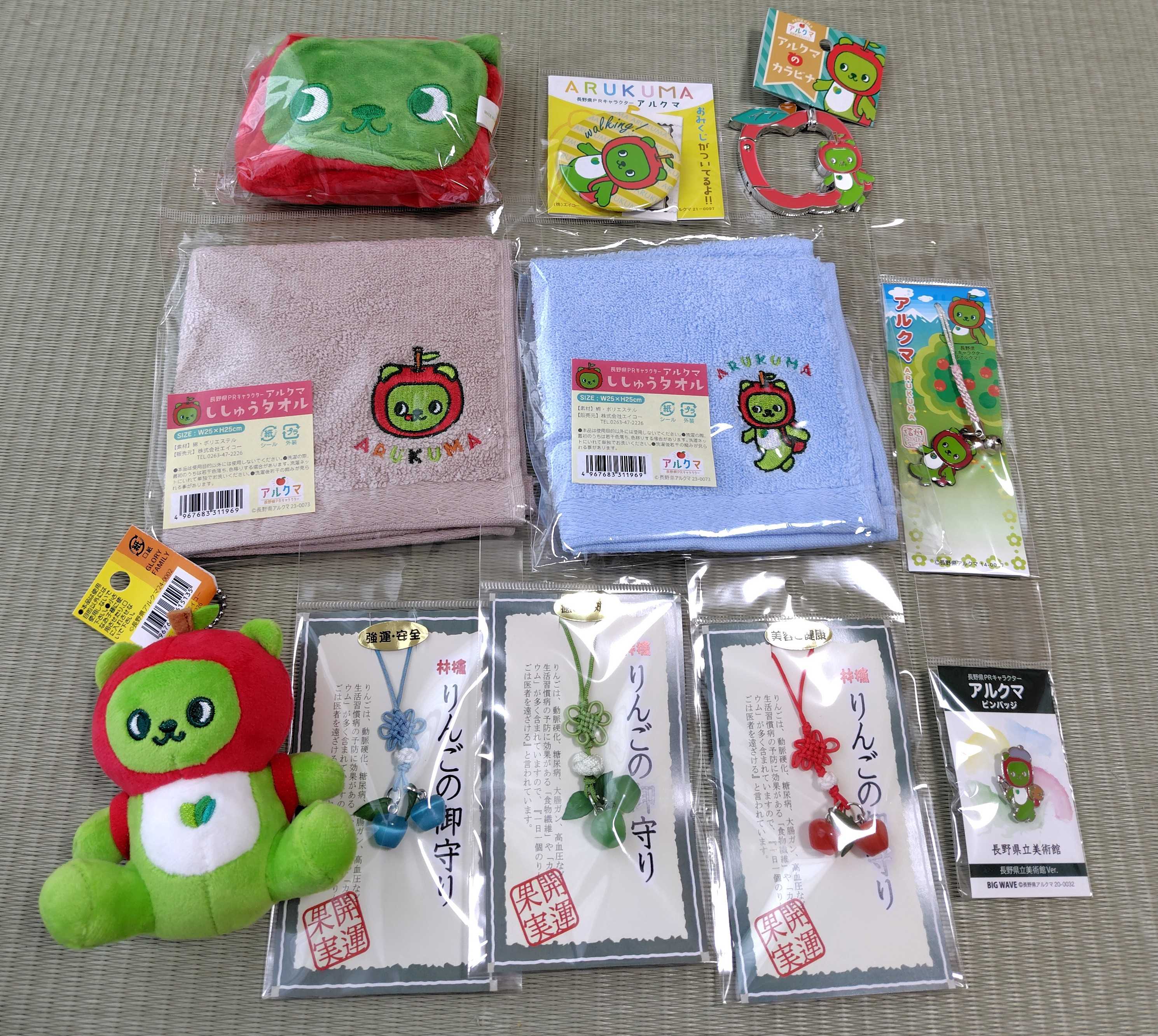 アルクマさんグッズとその日入荷されたばかりのりんごの御守り