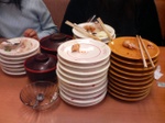 design++dalu++♥vvv♥「お寿司」とかけまして、「中島みゆきの『時代』」ととく...。そのこころは、「♪まわる~まわる~よ~」 今だ正月ボケが抜けきれない私です。 成人式、めでたい!!と言うことで行ってまいりました。いつものお寿司屋さん。2007年、初お寿司です。スポンサーの実家の両親を連れて行くことに。。。^m^ 休日という事で、朝はゆっくり...当然、朝、昼兼用のご飯。かっこ良く言うと、「ブランチ」ですね。ハラペコ娘はいつもの倍食べました...。 さあ、ご馳走様~と会計のボタンを押そうとすると、「待って!」と、怒鳴られ、「ビクッ」!娘と祖母が、それぞれチョコケーキとパンナコッタを... デザートは別腹だそうです...。...何処?別腹って?♥vvv♥