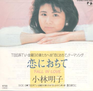 (ネットにて転写)恋におちて~FALL IN LOVE~作詞=湯川れい子 作曲・歌唱=小林明子 もしも願いが叶うなら 吐息を白いバラに変えて 逢えない日には部屋じゅうに飾りましょう 貴方を想いながら Darling I wan't you 逢いたくて ときめく恋に駆け出しそうなの 迷子のように立ちすくむ わたしをすぐに届けたくて ダイヤル回して手を止めた I'm just a woman Fall in love If my wishes can be true Will you change my sighs to roses whiter roses decorate them for you Thinkin bout you every night and find out where I am I am not livin in your heart Darling I need you どうしても 口に出せない願いがあるのよ 土曜の夜と日曜の 貴方がいつも欲しいから ダイヤル回して手を止めた I'm just a woman Fall in love Daling, You love me 今すぐに 貴方の声が聞きたくなるのよ 両手で頬を押さえても 途方に暮れる夜が嫌い ダイヤル回して手を止めた I'm just a woman Fall in love Don't you remember when you were here without a thinking we were caught in fire I've got a love song but where it goes three loving hearts are pull in apart of one Can't stop you Can't hold you Can't wait no more I'm just a woman Fall in love I'm just a woman Fall in love 今、「歌ワラ」って番組で、小林 明子が久々に歌ってた。懐かしいなぁ~。この歌が流行っていた時に貴方は何をしていましたか?1985年 昭和60年。。。私は、一番楽しい時期であり、迷いの時期でもありました。人間関係に悩んだり、恋に悩んだり・・・。その繰り返しで人生の何だかを学んだかもしれません。貴方はその頃、何をしていましたか??