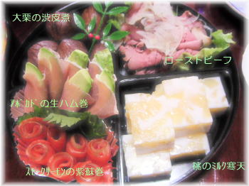 | | | | | | 地元の氏神様に、新年のご挨拶にお参りしました。 空が青くて、ポカポカの良い天気♪お神酒をいただく。このお神酒で酔ったら、バカになるそうだ。。。。(-_-;)こまいぬさんのように、あ・うんの呼吸で通じ合えたらなぁ~。帰りに寄った、スーパーで「讃岐 国分寺太鼓」を見学~。 では、ここで我が家の「おせち料理」公開~^m^ 十数年前、○○家に嫁いでから 新年のおせち作りは私の役目に・・毎年大晦日の夜から 新年の朝にかけて 作ってきましたがここ2年くらいは、スーパーで買った物のほうが多くなってきた。^m^この写真の赤い塗り皿は・・義母が嫁いでから45年間 毎年 元旦の朝のみ使う皿で・・新婚の時、私は ただのプラステックの皿だと思って ほかの食器と一緒に ジ~ャブジャブ洗ってしまい・・・えらくヒンシュクを買いました・・・(-_-;)明日は、これを実家にもおすそ分けに行きまぁ~す。