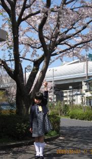 いやー、今年は寒い日が続いたせいか桜がこんな残ってるなんて嬉しい!昨日は、我が子の小学校の入学式学校の体育館って、独特の匂いがしますね。アスベストじゃないと思うけど、懐かしい匂い。式自体は幼稚園の卒園式と違い あっさりしたもの。そりゃーそうですよね。これから 色々思い出を作るんですよね。担任の先生は、女の先生 しかも お若い。幼稚園の先生も若かったので、どうかと思ってましたぁ。学校の先生は、色々な世代層に分かれてますし、、、性別も。昨日は、どっさり 色んなお土産を貰って帰ってきましたわー。私なんて バッグ一個なもんで どうやって あの教科書やらを持って帰ろうかと気になっちゃた。(持ち物に、手提げって書いてくれればよかったのに)平仮名で、名前を書いたわー。いつもながらの、通学路の地図。ほんとに、絵の才能のない私は 苦労します。あーっと、今日はもう帰ってくるー。どんな表情なのかな??行かないっていわなければいいのだが、、、、