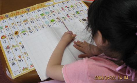 昨日は、学校に入って 初めてのPTA活動でしたぁ。いけないのかもしれないけど、泡よくば 役員は逃げようって思ってました。もともと、PTA活動は一部の人だけって聞いてたので。でも、委員になっちゃったぁ。初顔合わせでした。やっぱ、6学年 歳に差があると お母様方もいろいろですねー。まぁ、役員をきっかけに 学校に行って娘の姿を見れるので良ししますか!!娘も娘なりに、小学生の自覚が芽生えましたぁ。一昨日の「笑っていいとも」で今井 美樹さんのお嬢さんも新一年生で、すごい変わったって言ってましたぁ。何かあるのかな??まずは、朝は自分で起きる。(これは、幼稚園時代はあり得なかった。)そして、洋服も自分でコーディネイトして着替える(制服なのにダラダラだった。)一番びっくりは、7時50分に家を出る。(今まで、園バスが9時過ぎだったので8時まで寝てましたぁ。)美樹さんも黄色い帽子を被った娘さんを 毎朝 学校まで送ってるそう。うちは、私が毎朝 学校の手前まで送ってます。なぜなら、パパが学校まで送ったら、旗振りのお母さんに不審者扱いのように睨まれて送りはしないって言われた為。。。しかし、終わるのが給食始まっても帰りが早いですね。昔、私たちの頃は もうちょっと 学校にいたような。。もっと勉強しようよー。入学式を過ぎたあたりから、学校から帰ると今の所 机に向かってます。この日は漢字を書いてました。そうよーく見ると分かりますが、左手が利き手です。だから、縦書きはいいが 横書きはえんぴつ2Bだと 汚いです。