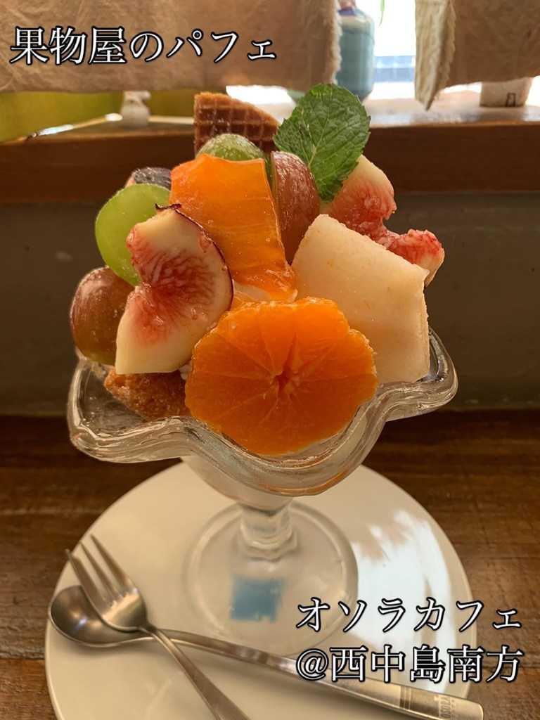 OSORA CAFE @西中島南方 〜青果店発祥のフルーツにこだわるパフェ 新大阪に到着して西中島南方にある老舗のカフェに向かいます。こちらのカフェはフルーツ屋発祥のようで、フルーツのメニューのバリエーションが多いカフェだすです。「食べログカフェ WEST 百名店2025」に選出されています。 新大阪駅に到着した時の人の出は凄かったですが、西中島南方に到着すると日曜日だからか、そんなでもなく、店に到着しましたら、「ただいまの時間すぐご案内できます」の状態のようです。感じの良い仲居さんに案内され、カウンター席のお好きなところへとのこと。まずはメニューをチェックします。13時までブランチセットがありますね。今日は箕面コロッケのサンド(たぶん)税込2,000円とお楽しみおまかせMIXパフェを注文します。まずは、たっぷりのカップで紅茶が到着しました。ほどなくコロッケのサンドが到着。コロッケサンドのプレートにはたっぷりの野菜とスライスしたオレンジとスライスした洋梨が添えてあります。後で隣に座ったお客さんの説明で、ここが(フルーツのサラダ付きが)ブランチプレートのサービスのようです。サラダは塩味がしっかしています。洋梨の甘さととても合っています。洋梨は青森のゼネラルレクラークとの説明がありました。コロッケサンドはボリューム満点で、うまい。おそらく野菜にふった塩味と野菜と加糖されたコロッケの甘さが絶妙です。プレートに落ちたコロッケの中身だけ食べるとコロッケとしてはかなり甘さがあります。なるほどぅ。おまかせMIXパフェが到着。黒板にあった無花果を入れて欲しいとリクエストしています。黒無花果ネグローネ、有田のみかん甘い、鳥取の鬼太郎柿、生クリームがうまい、でかいサクサク、鳥取の梨(銘柄覚えきれず)、ブラックシャンマスカット富士の輝き、シャインマスカット、アイスクリーム、あいすくの下には鬼太郎柿のジュレ梨の周囲など少し時間が押していて、確認できませんでした。残念。同じく、じっくり食べる時間がなかったので、歯が丈夫でないので、クルトンのようなものやガレットを残してしまいました。すいません。今日は時間がないのでバタバタと帰りましたが、また、勉強に来たいと思います。OSORA CAFE〒532-0011 大阪府大阪市淀川区西中島3丁目18−8電話 06-6301-8718