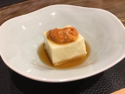 続いては、雲丹をのせた胡麻豆腐かな・・