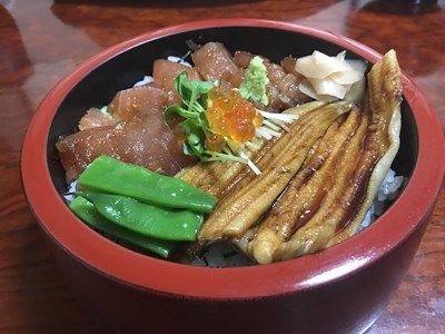 華御膳と漬けあな丼にしてみましょう。