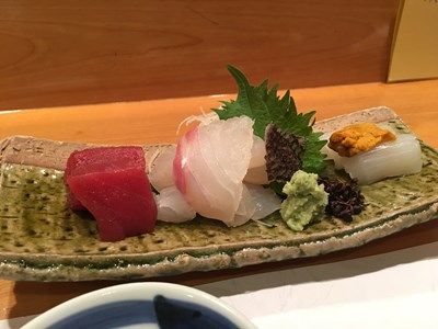 お造りは、真鯛、烏賊と雲丹、鮪赤身です。