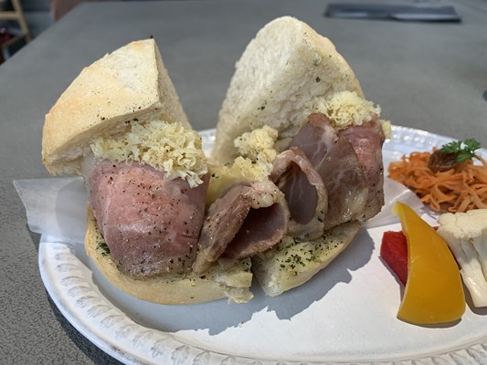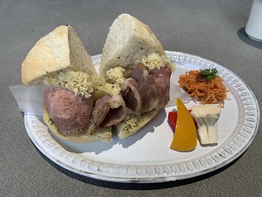 表面がかりっと内側がふわっとしたバンズで、ハムがうまいのなんのって。