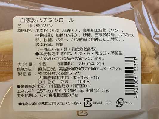 「Bio c'Bon」で飯場していた「自家製ハチミツロール」本体価格250円を試食します。