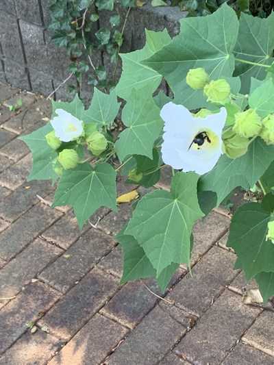 ジェームズオオクボ植物記 芙蓉と蜜を集めるクマバチ