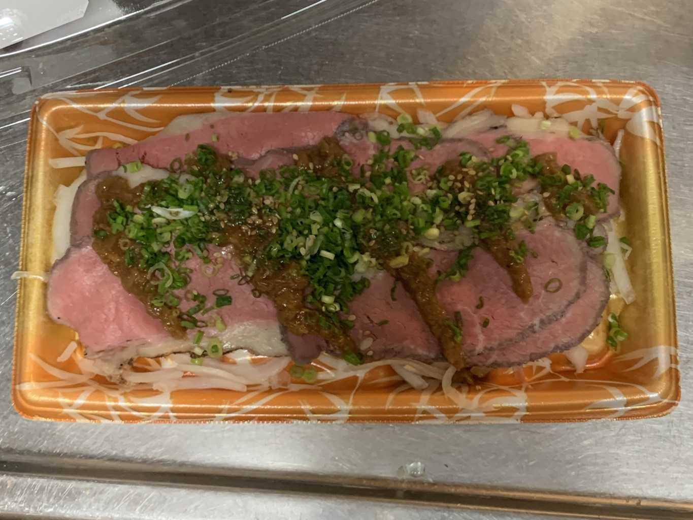 商品研究 「ヤオコー」の精肉売場の惣菜「オリジナルソース付 オリジナルローストビーフ」本体価格580円を30%引きの404円で購入して試食