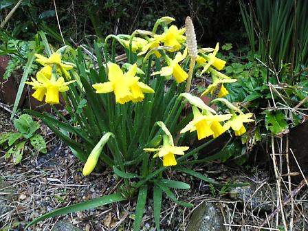 【つくしのかくれんぼ】スイセンを撮っていたら。。。つくしが一本見過ごしてしましそうな姿に 手抜き草抜きの イイワケをみつけた!? (笑) ぽちっと一押しご協力を
