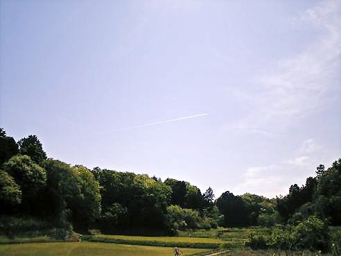 雲の落書き心落ち着かされる 緑の濃淡に 眩しく映える青空大いなる 自然のキャンパスに飛行機雲の 落書きが ひとすじ 写真ブログランキングに登録中 ぽちっと一押しご協力を♪