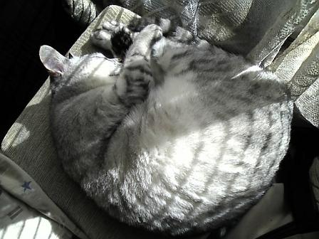 【おひるねこ】お気に入りの窓際のスツールの上でおひるねこ そんな言葉がしっくりとくるポーズ背中の縞模様はカーテン越しの影模様どんな夢をみているのやら。。。(笑) 写真ブログランキングに登録中 ぽちっと一押しご協力を♪