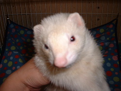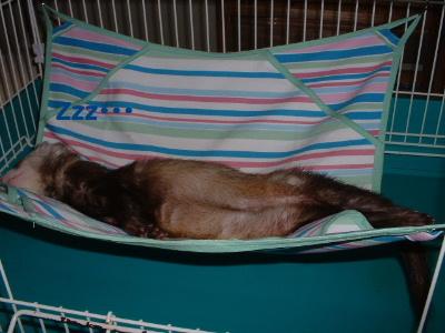 朝晩 だいぶ涼しくなってきた。エアコン そろそろ無くっても平気かな~?なんて思っていましたが・・・いたち達は まだまだ暑いようで オッ!アザラシが寝てる?! ジョーイ君暑かったね!ゴメンゴメン!すぐ、エアコンつけるからね~!お腹を『ちょんちょん!』すると・・・アザラシジョーイが起きた!!ムフフ♪アザラシさんに見えるかな?(ジョーイの『お毛毛』もう完全復活してくれました傷跡もわかりません!) ももちょこ♪ 頂き物のチョコレートについていた・・・真っ赤なリボンすぐ捨てるのが勿体なかったので・・モモ子に巻いてみた♪お散歩などしない我が家なので、ハーネスなどつけたことが無い! あら~!意外と嫌がらないじゃん?とお顔を拝見ブッス~っとしてたので・・・後姿のみモモちゃん♪←結構可愛いですよ 今日は仲良し♪ 放牧している間・・バトルばかりしている『ジョーイ&レイ』。今日は静かなので何してるのかな?ジョーイ君がレイ君を・・・『もみもみ』してるではないか~!!ワァ~オ飼い主もビックリ!!いつもこんな風に 仲良くね ハンモの寝心地は~? ♪レイ君へ♪ハンモック気に入っていただけましたでしょうか?カラフルすぎたかな?また作るから、我慢して下さい《おまけ》今朝、フェレ放牧中にやっていたテレビ番組『それいけ徹之進?』という、ワンちゃんがしゃべるアニメ。特に見ていたわけではないのですが・・・『フェレットを捕まえろ~!』の言葉に反応してしまった飼い主『ん? どれがフェレット?? これ?』・・・だって頭に毛がフサフサ? 『 あ~!!』