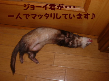 ゲームおたくの飼い主数日前から・・あるゲームを始め、熱中している私。ん?昔やったかな?フェレズの放牧中も・・・ 『右手に・・デジカメ、左手には・・DS』 いざ・・・廊下へGO~!!部屋よりも、廊下の方が危険が少ないので・・思う存分遊んでいただきましょう~!っと。飼い主は・・・廊下に座り込み『ピコピコ』 でも一応イタチさん達と遊んでいるつもり ママ~!GAMEしすぎだよ~! と愛フェレちゃんに怒られてしまいそう・・・気をつけなくちゃ!モモ子は『一人遊び』が大好き毎日 こんな感じで~す! 3フェレズで・・廊下へまっしぐら~ ジョーイとレイは・・いつも二人で バトルをするので~ 勝手にあそんでね そろそろ・・・モモ子のいつもの一人遊びが始まるかな???ちゃんと・・誘いに来る!エライ!! 危険なおもちゃなので・・・ちゃんと見張っています♪←が・・・たくさんあるので~大興奮気味のモモ子嬢 あらあら大胆ですね~!イヤ~ン!お恥ずかしいので・・隠しておきます一通り・・フリフリ ポ~イ♪としばらく遊んだので・・・今朝も・・満足ですわ~と。ではでは・・・ママはまたゲームに戻らせていただきますおやすみ~!!ゆっくり夜まで・・オネンネしててね♪