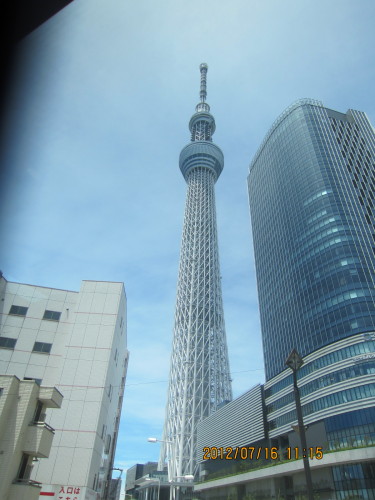 世界一の電波塔 東京スカイツリーその展望台に上がるエレベータは世界最速で、魅力的デザインです。エレベータに乗る楽しみ、350mないし450mの高みからの東京の風景。この楽しみは人気爆発で当分は、くじに当たるようなもの。それでは、スカイツリーの下で楽しむ。真下で塔の先端を見上げるのは、あまりの高さで一度見ればそれでいい。しかし、下層の鉄塔の迫力はさすがである。ソラマチの魅力は、昨日少し書きました。1Fから4Fのソラマチ商店は好奇心旺盛の方なら半日見ても飽きない。そして31階のレストランからスカイツリーを見るのも乙なものです。そして、150mの高さからの東京の景色を楽しめる。もう一つ、スカイツリーにより、墨田区界隈が活気付いた様を見る楽しみがある。これは是非お勧め墨田区循環バス三ルートあります。どのルートも一周1時間程度で100円です。3ルート乗ると300円。ただし、一度下車して、再度乗車する時は料金を支払う。そこで定期乗車券があります。3ルート乗車でき、しかも何回でも乗り降り自由で300百円。何が魅力か?スカイツリーを程よい距離から見れること。360度から見れます。そして、街並みから見るスカイツリーは各種表情を持っています。更に、冷房の利いたバスの車内は快適です。また、路線沿いに「勝海舟像」「榎本武揚像」「江戸東京博物館」「森鴎外住居跡」など数々の見どころがあります。1日では足りなかもしれません。しかし、欲張らずに何回も楽しむことです。今日の画像は、その循環バスの路線図です。