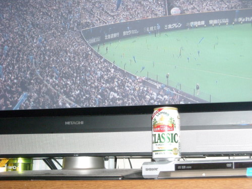 画像説明10月30日 日本シリーズ第3戦をテレビ中継で観戦7回から8回に入る前に日ハムフアンは風船を上げるのが恒例となっています。画像は6対2で日ハムが勝っている状態での風船上の光景です。テレビの前のビール缶は小生がテレビ観戦しながら飲んだビールです。このビールは北海道 富良野産のつみたて生ホップを使用した数量限定で発売されている、サッポロビールCLASSIC です。日ハムが勝っているから美味しいのはさることなが、このビールも本当においしいです。