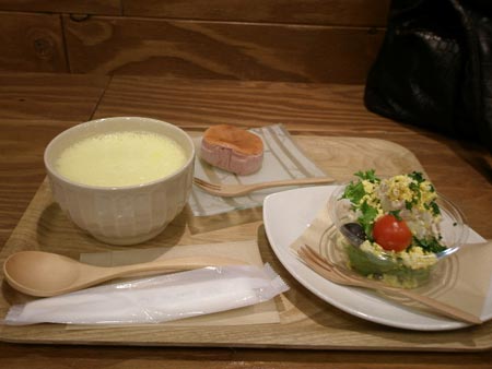 病院の二階のカフェから眺めた風景ですが、きのこの和風パスタを食べていました。四番出口の隣のビルにニブリックカフェというちょっとしたカフェがあります。カフェ本が置いてあっていい時間潰しになります。本当はまたその隣のビルのアジアンなカフェ「ザ・サン」へ行く予定でしたが、営業していませんでした・・・潰れたのか、休業日なのか不明。そこでこちらのちょっと珍しい黒ゴマのおしるこをいただきました。黒ゴマをかけて食べました。お茶漬けのようなあられがトッピングされています。美味しかったですよ~。