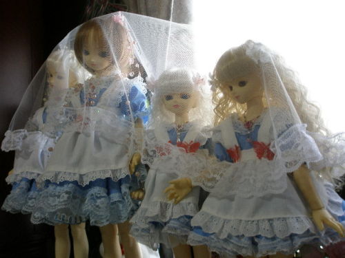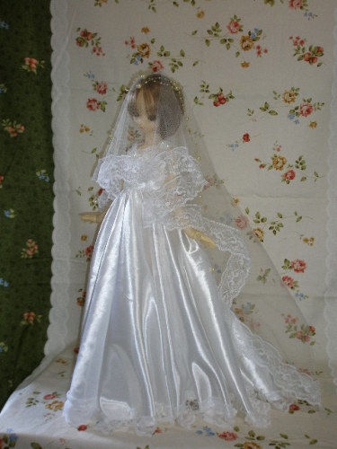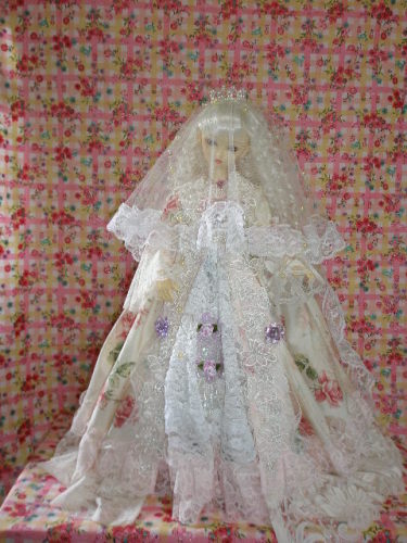 チュールのウエディング・ヴェールを製作しました。ドレスはめぐちゃんのロココ調ドレスですが・・・純白のウエディングドレスを作ろうかと思っていましたら、レースが足りないなあと。
