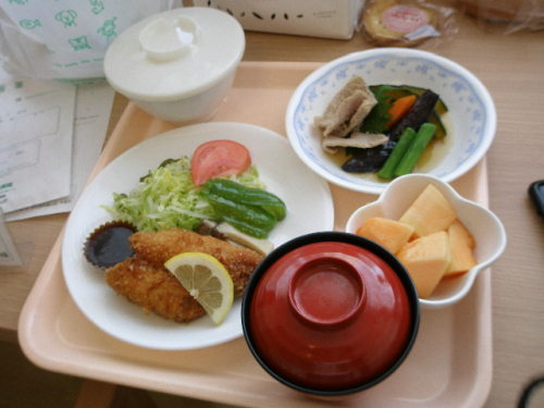 産婦人科のラウンジにあったドトールの自販機です。カプチーノがお気に入りかな。そうそう、晩御飯も撮ってきましたよ、小橘が言うには朝・昼の方がボリュームがあったような気がしたそうです。一応いつもデザートが付いているそう、今回はメロンでした。産科って、満室ということはないんですね、昔は同じ日に生まれた子が何人もいましたが・・・少子化か・・。