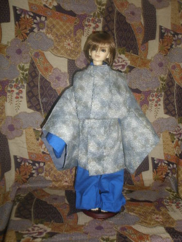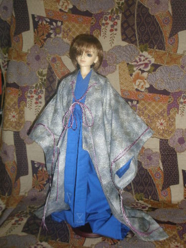 先日の狩衣の生地がまだ残っていましたので、今回また平安衣装にしてみました。これはこれでいい感じです。一応、色合い的に少年用です。