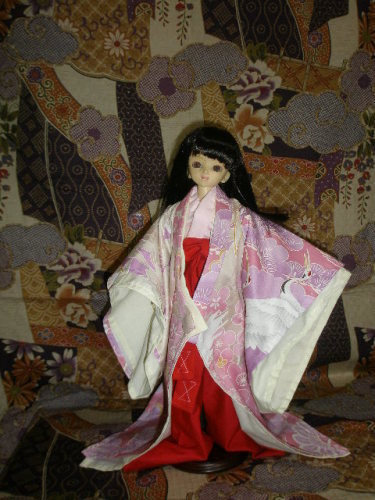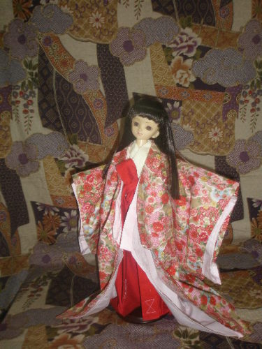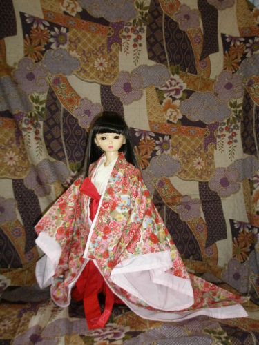 積もりましたね・・・20センチくらいでしょうか、今朝は銀世界です。ああ疲れた・・・朝一で雪かきです。 今回、また平安衣装です、まあ時期ですから~。先日の小花の小袿のサイズ違いです。