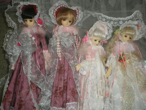 やっとクリスマスドレスに着がえさせました。ヴェールはいつのまにか埃よけになっています。 ロングドレスに着がえさせたら孫ちゃんもミュウちゃんたちの足を引っ張らなくなりました。なるべくさわらせないようにしていますが、やはりちょっとは気になるようです。たまに、じ~と見つめている時があります。また今日も孫ちゃん怪獣がやってきます・・・。