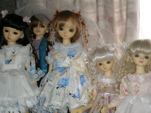 ミュウちゃんたちもサマードレスに着替えさせました。来月まではこれでいいかあと。衣装ケースに随分前に製作した百合の花の平安浴衣もありました。五人おそろいの衣装なので、真夏はまたこれかな。