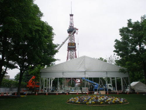 大通二丁目になにやら建設中です。たぶん北海道お菓子フェアの会場作りなのでしょう、その後札幌シティジャズの会場にもなるんでしょうね。でも、ちょっと前まではドーム型のテントでしたが、いつからこのようなハウス型の会場になったのでしょう・・・写真で見たら二階席もありますよ。二枚目の画像は市役所です。いつもは時計台前のバス停で降りて札幌市役所を通って大通公園へ出ます。 お花もきれいですね。今月は薔薇園も開花するでしょうね~。 さっそく行ってきました、フードパークです。そこで食べた伊勢うどんです。三重県の津市からの出店です。伊勢うどんはお取り寄せでよく食べていますが、やはりお店によって味は違いますね。松坂牛の串焼きもありましたが・・・。広島風お好み焼きもいいなあと思っていましたが、私にはボリュームがありすぎました。 演舞は昼間はやっていません。ファイナルを見に明日でも行ってみようかな。 鉄板屋台のブースの「めめ」というお豆腐屋さんのスイーツです。豆乳クリームのおやきですよ、もちもちで美味しいです。ここの豆腐も食べてみたくなりました。そういえば、おやきは北海道お菓子フェアにも出展されるようです。