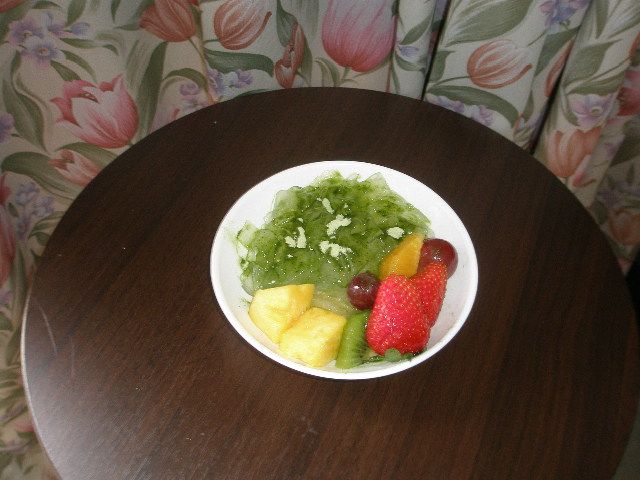 今年お初の小玉スイカです。ふと外の温度計をみたら気温4℃ですよ・・・寒っ。ストーブをつけて、その前でスイカを食べています。それと、ティータイム用にとネットスーパーで見かけて取ってみたサイコロ状の炭焼きコーヒーゼリーですが、おもっていたより美味しいです。