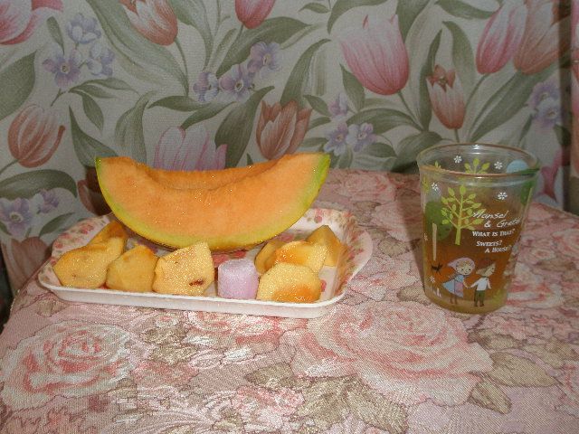 帯広から帰るとき立ち寄った長沼の道の駅マオイで購入してきた夕張メロンと初物の柿でティータイムです。ここは1000円から夕張メロンを買うことができます。こちらの夕張メロンも1000円で買ってきました。ちょっと熟しはじめているかなと思いますが、味は問題ありません。夕張を通って帰るんですが、地元では買わずに長沼のマオイの道の駅でいつも夕張メロンは購入しています。それとハウス物の柿も出ていました。もう柿ですよ~。それと、札幌では500~600円もするカンロがなんと200円…野菜も大量に購入してしまいました。地方は物価が安いですよね、帯広へ行った帰りによく買い物をして帰ります。