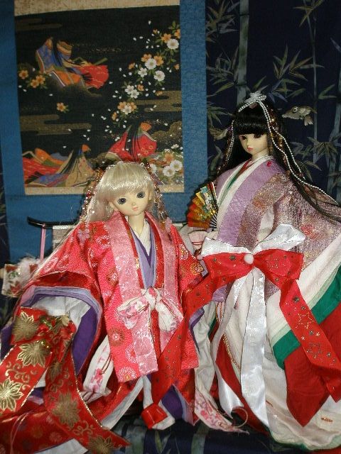 和装でリボンオーナメントを持たせてみました。昨日ミュウちゃんたちだけ着替えてクリスマスバージョンにしましたが、ののちゃんたちもやはり着替えさせました。この子たちはこの十二単で新年も迎えられそうです。クリスマスオーナメントはあまり十二単には似合いませんが…右側のリボンオーナメントは和風ですよ~。そして、また集合です。ああ十二単は幅を取る・・・。衣装は以前手作りしたすべて在庫のものです。もう一年くらい手作り衣装は新調していません。ミシン、ちゃんと動くかな…。