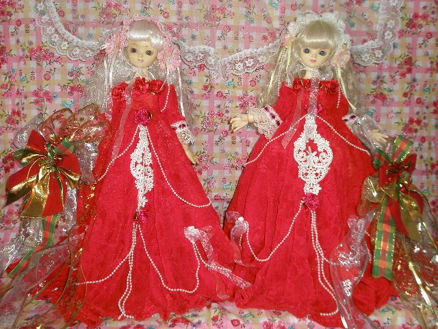 ミュウちゃんたち二人だけですが、着替えて撮影しただけで疲れました。いままでずっとまだハロウィンドレスのままでした・・・。ついでにクリスマスオーナメントも持たせましたよ~。ドレスもリボンオーナメントも在庫のものですけどね。ののちゃんたちはこのまま来年か・・・。