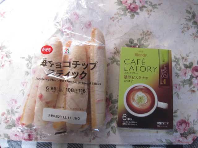 新商品の苺チョコチップステックです。よくチョコチップの方は食べていましたが、イチゴ味がでましたね。それと、濃厚ピスタチオココアですよ、あ・・本当ほのかにビスタチオの味がする。でも、甘い・・・。ところで、この間からしゃべる鬼滅の刃のDX日輪刀をネットで見て回っていましたら、以前は7000円くらいで買えたのに最近は軒並み一万円越え…クリスマスも近いからか。でも、Youtubeでそれでポーズをつけて遊んでいる男の子がかわいい~。全集中の水の呼吸のポーズを決めていました。なんでも、50種ものポーズがとれそうですよ。孫ちゃん炭治郎にもポーズを決めてほしいなぁ・・・姫ちゃん禰豆子とのツーショットを居間の壁に飾りたい…。ついでに、ローソンで24日から予約受付の鬼滅の刃キャラのカップ…かわいいなぁ、申込んでこようかな。
