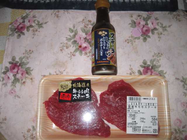 佐幌高原牛はネットスーパーで時々届けてもらっていますが、しほろ高原牛?値段も手ごろですよ。しほろ牛のことだろうか・・・以前、しほろの道の駅で牛丼をたべたことがあったかな。どちらも十勝産の牛肉です。とりあえず、この間楽天24で届けてもらったこちらのトリュフ・ポルチーニ風味のステーキソースで食べてみよう。あっ、冷蔵庫に山わさびもあったなぁ~。最近、お肉の画像が多い…。
