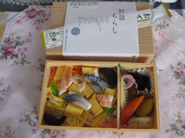 訪問販売でこちらのヨーグルトと牛乳などを試供品として営業の人が置いていきました。暇なボス橘が相手をしてしまって結局三点の品を置いて行ったんですけど、またあ・・・何回もしつこく来るじゃん、と文句を言いました。どれどれ、どんなのを置いて行ったの? と、ふっとみたら姪に紹介されて最近注目しているR-1ではないですか。スーパーではよく赤いパッケージに入っているのを見かけますが、こちらは明治のものです。で、結局週三回二人分宅配を取ることにしました。またランチ用の散らし寿司のお弁当です。前回、マグロも入っていたんですけどね、今回代わりにブリが入っていました。来週、セブンで薩摩の鶏だったか、美味しそうな親子丼が出るそうなので、楽しみにしています。
