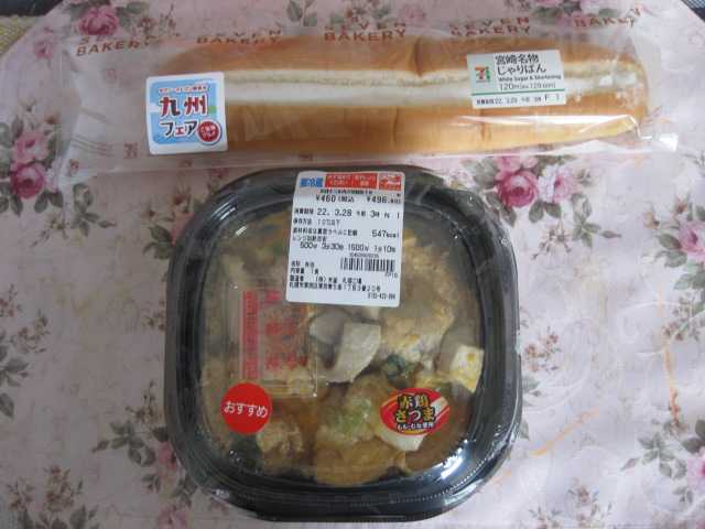 なんだかはまっています…ただいまセブンで九州フェアが開催中なんですよ。先日、ちゃんぽんを食べましたが、今回は宮崎のじゃりぱんと赤鶏さつまの親子丼です。ふわとろの親子丼はたまに食べていますが、赤鶏さつまの親子丼はどうだろう。そういえば、ずっと前何年も前のことなんですけど、丸井さんのうまいもの大会で名古屋コーチンの親子丼を食べたことがあるんですよ。とっても美味しかったのを覚えていますけど、やはりあれにはかないませんよね。