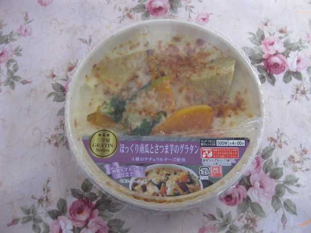 どちらもカボチャメインの食品です。グラタンの方はサツマイモも入っています。グラタンはランチ時にちょうどいいボリュームです。
