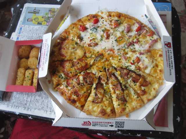 新しいグルメクォーターらしいですよ、ピザーラから取ってみました。孫ちゃんたちがそろそろ来る予定なので、待っていますが‥‥お腹がすきました。いつも電話で予約していましたが、今回はじめてネットから予約してみました。ちゃんと時間通り届きました。