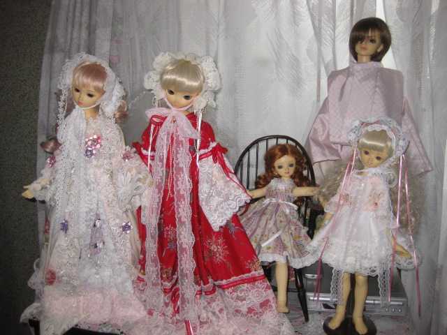 姫ちゃんに手伝ってもらってこの子たちもやっと重い十二単からドレスに着替えました。ののちゃんたちは姫ちゃんがロングドレスがいいということでこちらになりました。そのうちまたミニドレスに着替えよう。