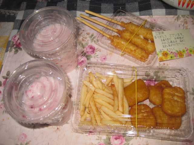 昨日,姪から電話があってじいちゃん犬のクリンが虹の橋を渡ったようです…わんちゃんが亡くなるとき虹の橋を渡るらしい、とどこかの動画でみました。そうかあ、もう寿命だし、この間から具合が悪いと言ってたから・・・。チロもクリンもいなくなっちゃったか・・。画像は新商品でしょうか、シャインマスカットのグミをみつけました。半分は姫ちゃんに食べられてしまいましたが。それと、ポテトサラダキッチンというデリバリーの専門店から届けてもらったお弁当、晩酌にいいおつまみ盛り合わせと台湾QQボールとか言うさつまいものスイーツです。ちなみにメニューはチーズフライ・唐揚げ・タコの唐揚げ、たまご・ナスの甘酢・うずらカツなどです。