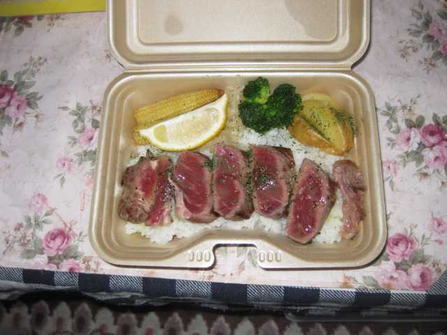 ああどうしよう…デジカメを弄っていたらシャッターがおせなくなってしまった・・・・。画像はなんだかステーキが食べたい気分、ということで、パルコのレストラン街にあるピッカーニャプラスというステーキ屋さんから届けてもらったステーキ弁当です。ランプとサーロインの二種セットです。明日からの画像はどうしょう・・・。