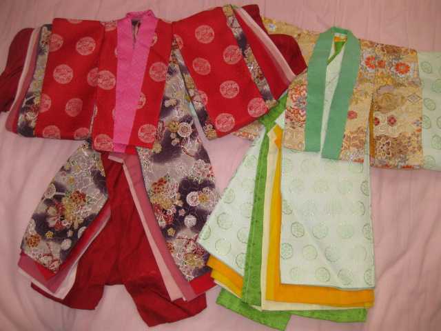 ののちゃんたちも着替えましたよ、いつもペアの表着を使用していましたが、今回は別々に揃えました。有識紋は映えますね。着せ替え中、人形嫌いなボス橘は怖がっていました。黒髪に着物はリアル・・。集合写真です。リカちゃんたちとも一緒に撮影したかったのですが、ここまでで疲れ果てました…ドールといえど、十二単の着替えは大変です。人形部屋に相応しい写真を用意したかったのですが…。