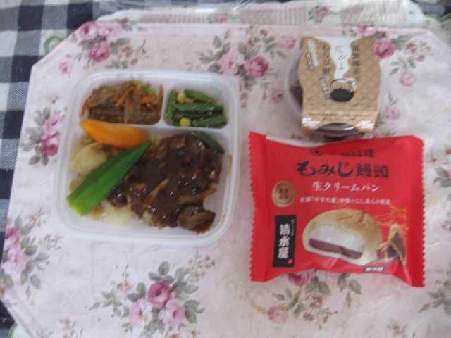 今回の日替わりはハンバーグの和風キノコソースです。それと清水屋の生クリームパンのもみじ饅頭、久しぶりのわらび餅京都黒みつです。コンビニにもうわらび餅は置いてないのかな…秋も近いですし、それにしては暑い・・・。そういえば、ジャパネットのおせちに措置命令がでてましたが、そう、あれですあれ、今年も買ったジャパネットのおせち。