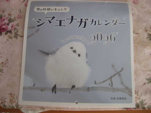 届きました、来年のシマエナガカレンダーです。表紙と裏表紙ですが、月ごとの写真が掲載されています。かわいいでしょ~。