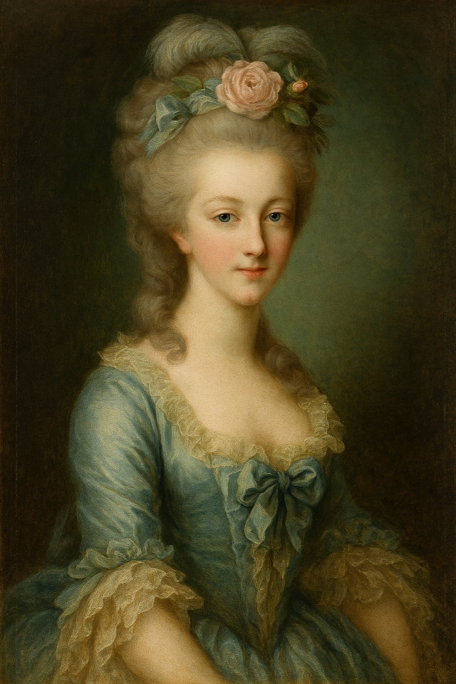 前にド派手なマリーを描いてもらいましたが、やはりまともな画像を描いてもらいました。若いころの彼女とサロンの中心にいる王妃様…またちょっと派手っぽい?最近、ネタがないときはAI画像を利用する傾向があります。ついでに、デュ・バリー夫人を描いてもらったらこんな感じ。