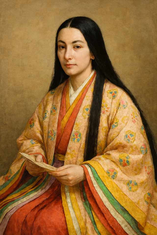 洋物が続いたので今回は和の肖像です。紫式部は何度か描いてもらいましたが、いずれも地味な着物ばかりでたまに明るい色の装束にしてよ、とおねがいしましたらこんな感じの衣装になりました。清少納言は有識紋の装束で描いてもらいました。性格も明るい人みたいなので、ちょっと微笑んでもらいました。ついでに和泉式部も描いてもらいました。彼女だけ名前入り…。