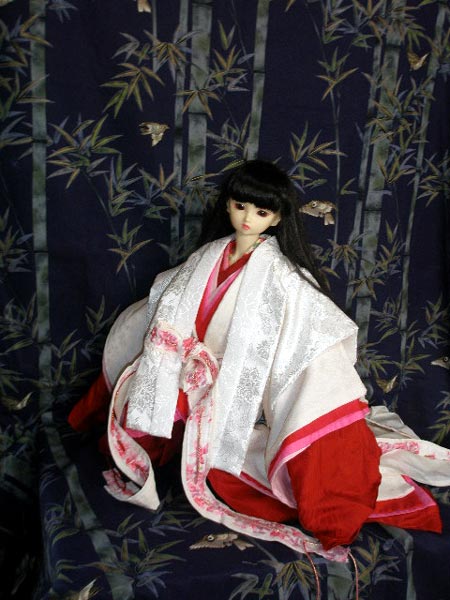やっともう一枚の白い唐衣が仕上がりました。今回衿も白です。これに白い単や袿 を組み合わせたら平安の花嫁さんですね。