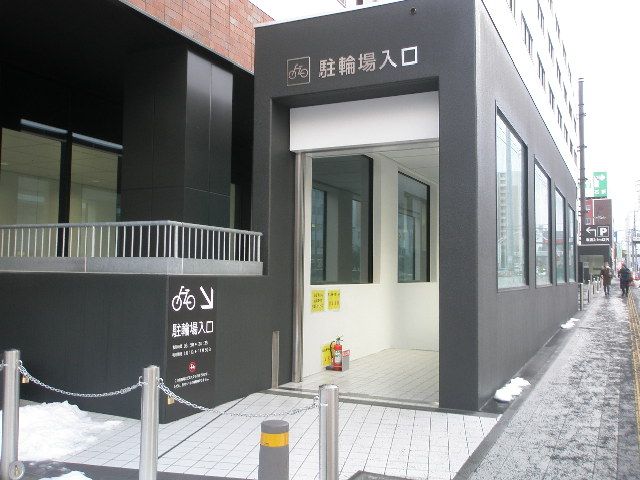 駐輪場なんですが、地下一階にあります。で、こちらがその入り口。駐車場は立体で入り口がわかり辛い・・・。