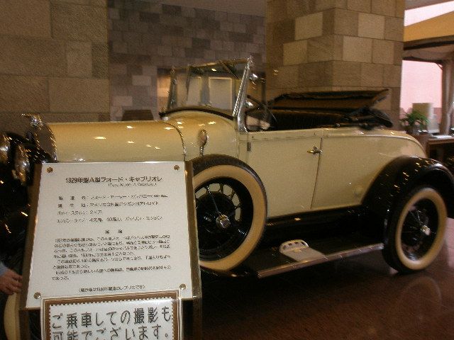 次の日、幕別温泉華のゆへ行ってきましたが、朝早すぎてまだ開いていませんでした。それでとなりのグランヴィリオホテルの売店とロビーで時間をつぶしていましたら、クラッシックカーなんて展示してありましたよ。
